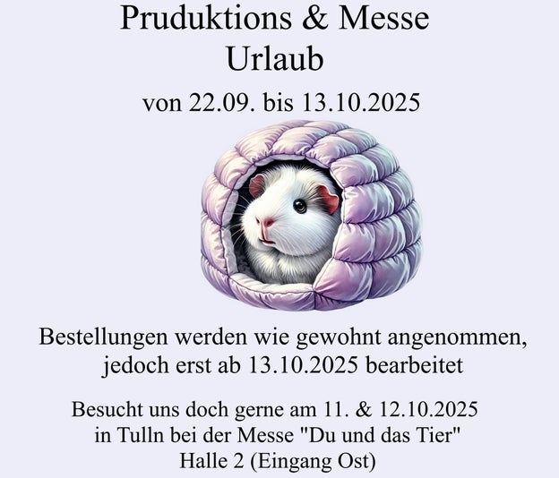 Am 02.11.2021 erfüllte ich mir meinen Traum meine Leidenschaft Kuschelsachen für meine Lieblinge zu nähen als Gewerbe anzumelden. Nun kann ich auch für eure Lieblinge tolle Kuschelsachen zaubern. Bitte bedenkt, dass ich noch ziemlich am Anfang stehe und ich erst in das "Geschäftliche" hineinwachsen muss. Aber da ich so viel tolles Feedback und Zufriedenheit der tierischen Produkttester bekommen habe, musste ich einfach diesen Schritt wagen.