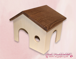 Dieses Himmelbett lädt die Kaninchen zum träumen ein. Wenn man den Himmel heraus hebt kann man es separat als Pavilion und Heubett verwenden.