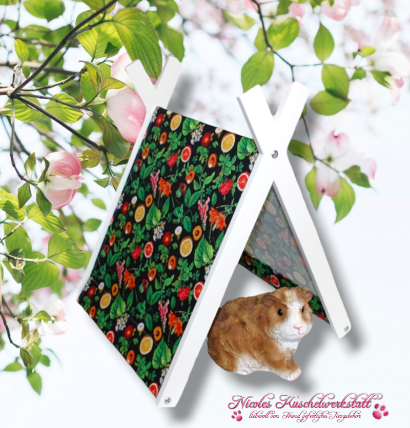 Der Vorteil dieses Hauses sind die seitlich angebrachten Fransen, sie sind jederzeit extra abnehmbar und einzeln erhältlich. Die Schweinchen können beliebig durchs Haus flitzen. Im Sommer ist es Luft durchlässiger so staut sich nicht die Hitze und die Schweinchen lieben es.